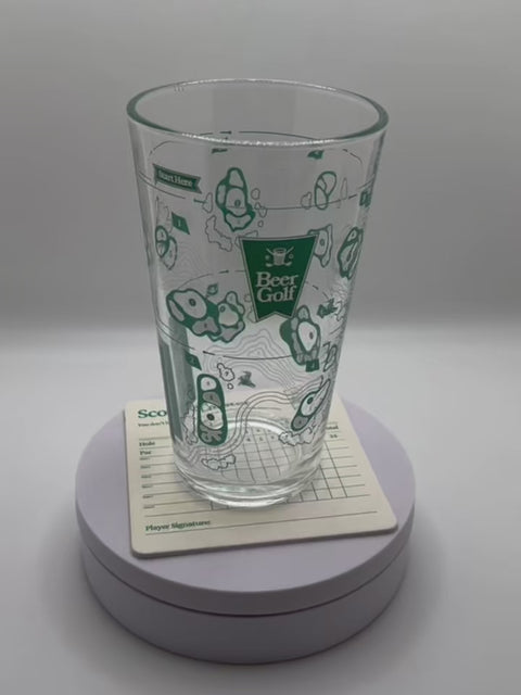 Grab a friend and tee off with Beer Golf™, the greatest game on glass! The set includes two (2) premium, dishwasher-safe 16 oz pint glasses featuring a 9-hole Beer Golf™ course, six (6) scorecard coasters and one (1) golf pencil to track every swig.